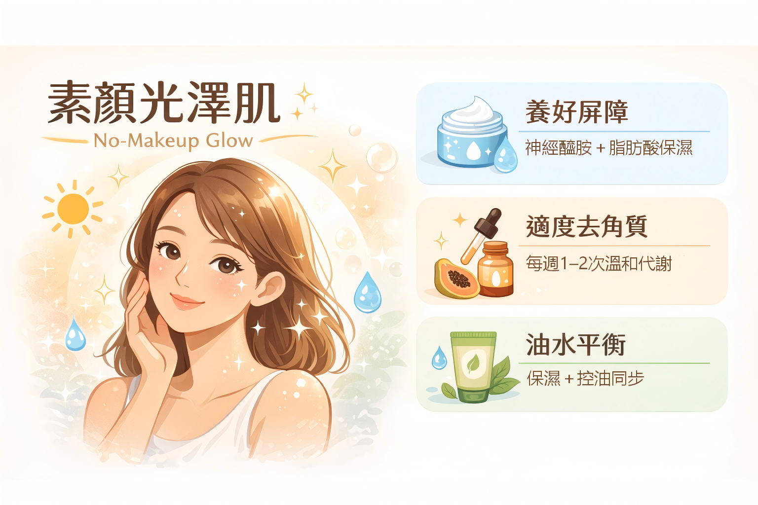 要養出素顏光澤肌,底層邏輯其實是「養好屏障+適度去角質+穩定油水平衡」: