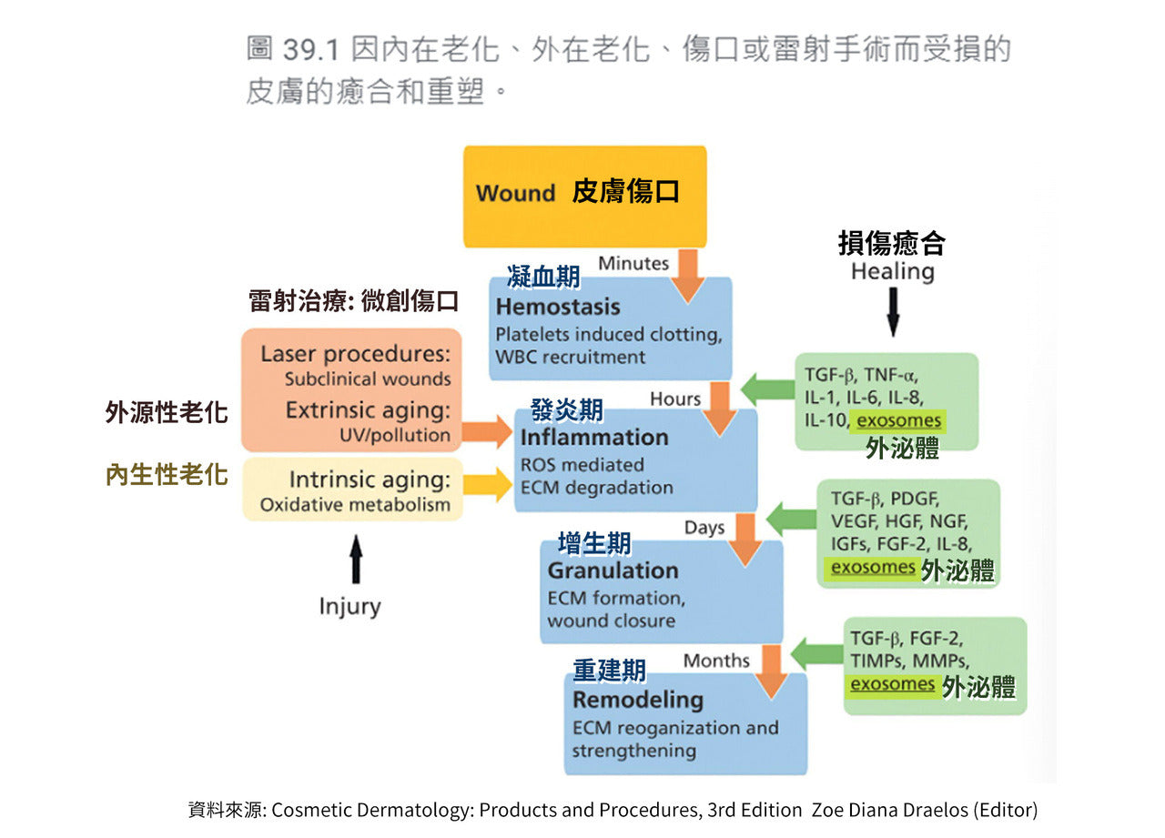 在做完雷射、煥膚、針類療程後,皮膚會有一定程度的發炎與受損,外泌體被期待能讓紅、腫、乾燥等恢復得更快。
