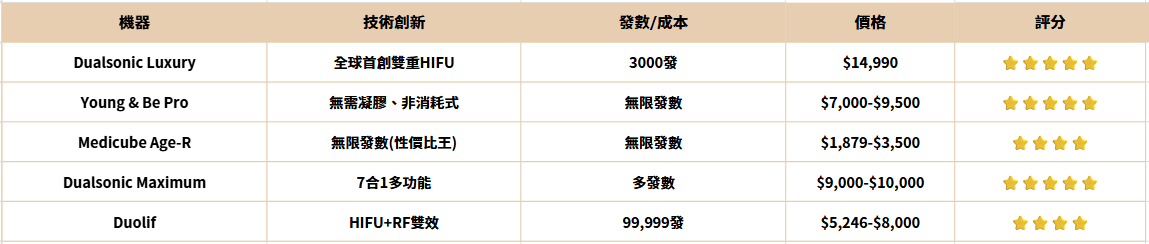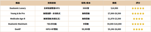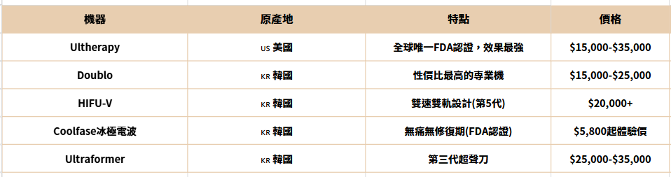 1.機種選擇——FDA認證美國機(Ultherapy、Ultraformer III)價格普遍比韓國機(HIFU-V、Doublo)高15-30%