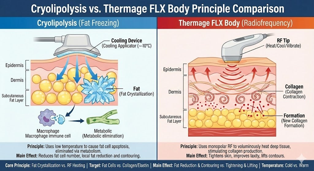 好多人都面對呢種「局部脂肪焦慮」——想快啲瘦,又唔想動刀,仲要唔影響上班。而近年爆紅嘅兩大非侵入式塑形技術:CoolSculpting 冷凍溶脂 同 Thermage Body 熱瑪吉身體版,正正擊中我哋嘅痛點! 但問題來了: 「邊種先適合我?邊種真係有效?會唔會好痛?」