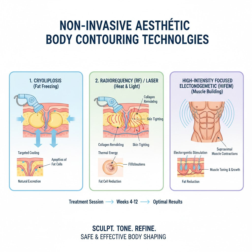 2026年,妳不再需要在運動房揮汗、也不必餓著肚子節食。科技已提供了多種非侵入式選擇,讓身材管理成為一場舒適的療程體驗,而非痛苦的自律考驗。