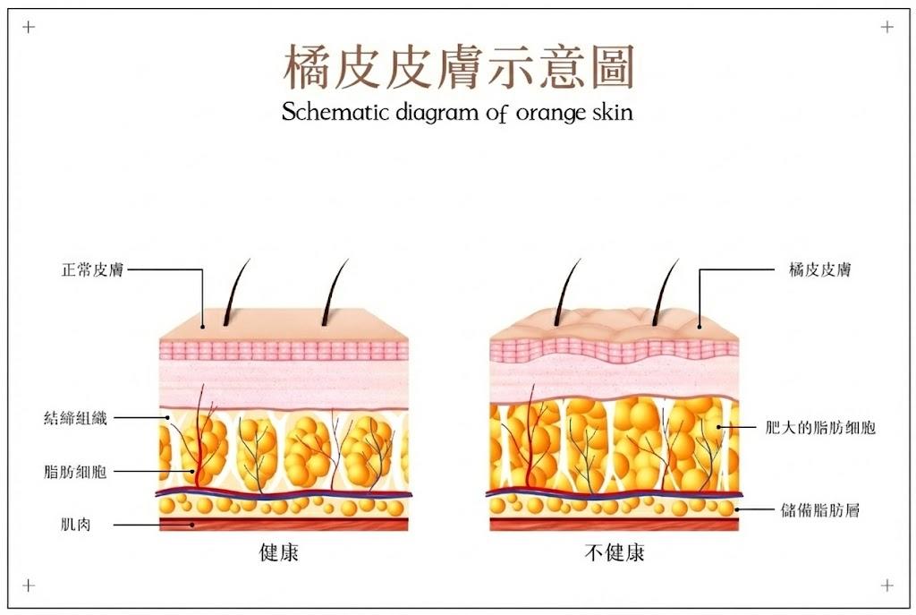 為什麼單純節食和運動無法完全消除橙皮紋?因為問題不只在於脂肪量,還在於脂肪細胞的位置、結締組織的質量、循環狀態、以及皮膚纖維化程度。這也是為什麼現代醫美療程如此重要——它們直接作用於這些根本因素,而不是僅依賴卡路里赤字。